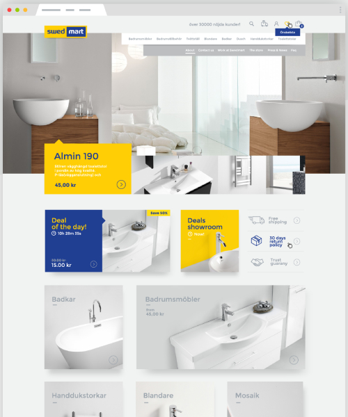 Swedmart är en specialiserad webbutik som fokuserar på att sälja ett komplett sortiment av badrumsprodukter: duschkabiner, duschdörrar, duschset, duschpaneler, badkar, toalettstolar, kranar, handdukstorkar, badrumsmöbler och tillbehör. Bolagets affärsmodell bygger på direktleveranser från tillverkare, vilket gör det möjligt att erbjuda konkurrenskraftiga priser i ett segment som kännetecknas av stabil efterfrågan och höga marginaler. Investeringarna är inriktade på att stärka marknadspositionerna och utöka kundbasen.